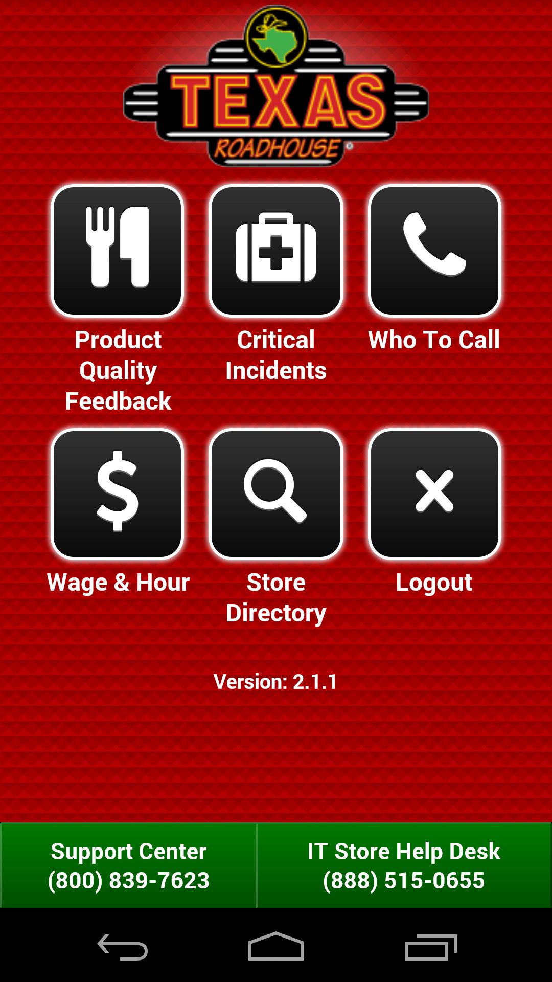 - 중요한 사고 핫라인 및 TXRH 홍보 홍보 홍보 버튼은 항상 화면 하단에 있습니다.