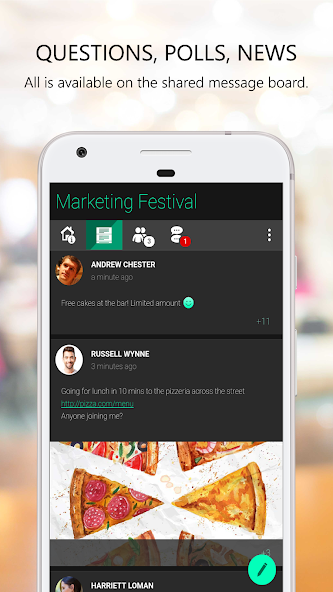 • 지금 일어나고있는 일을 따르십시오. 주최자와 다른 참석자로부터 뉴스와 정보를 배울 수 있습니다.