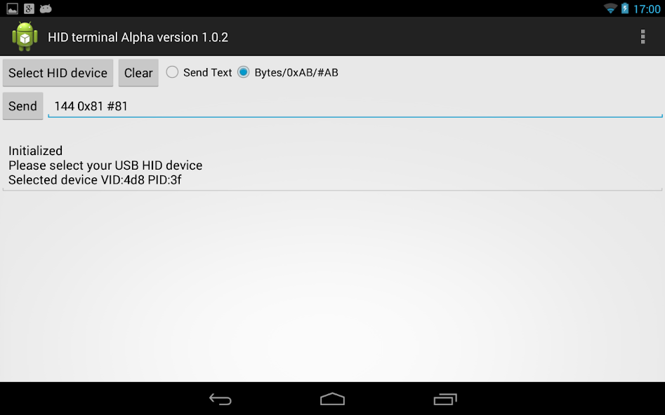 USB HID TERMINAL - 바이트, 16 진수, 이진, 텍스트를 수신하고 보낼 수 있습니다.