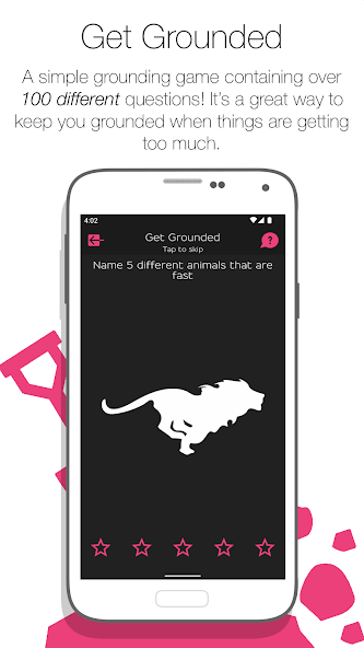 • 스트레스를받을 때 당신을 접지 상태로 유지하는 데 도움이되는 100 가지가 넘는 재미있는 질문이 포함 된 접지 게임