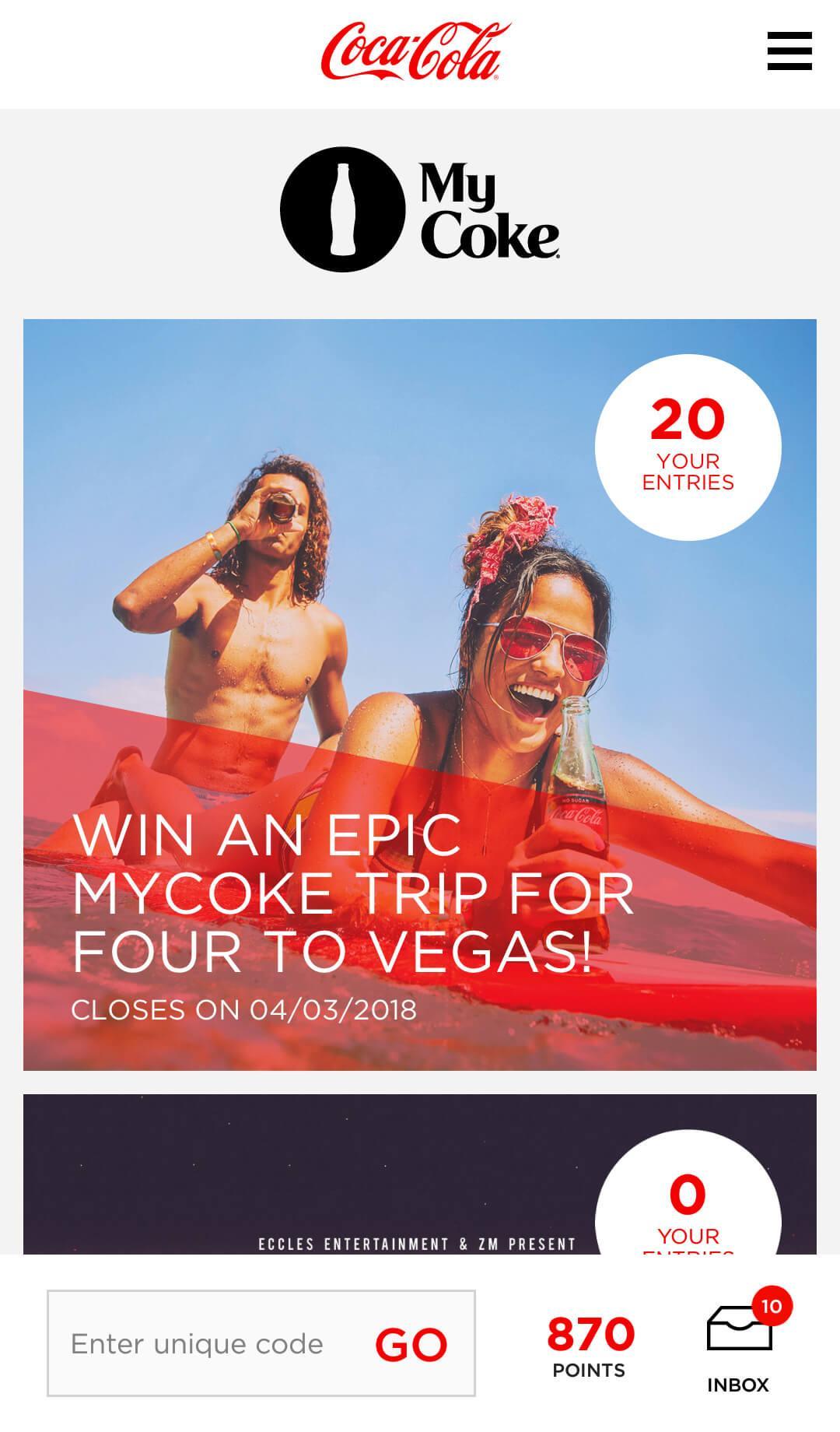 MyCoke 당신이 멋진 상을 받기 위해 들어갈 수있는 곳입니다.