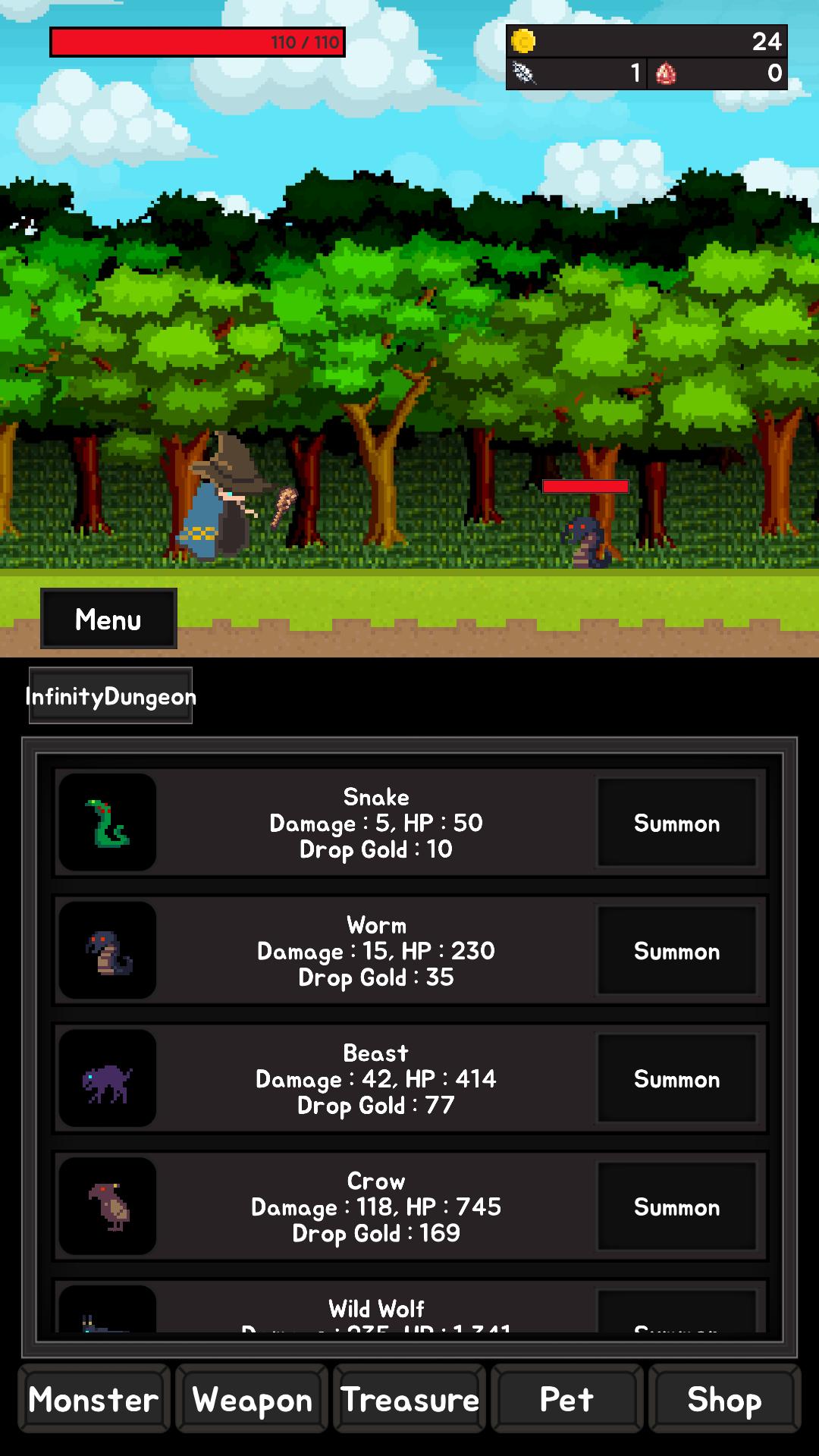- Challenge the endless dungeons powerful Wizard to try to record the highest stage.