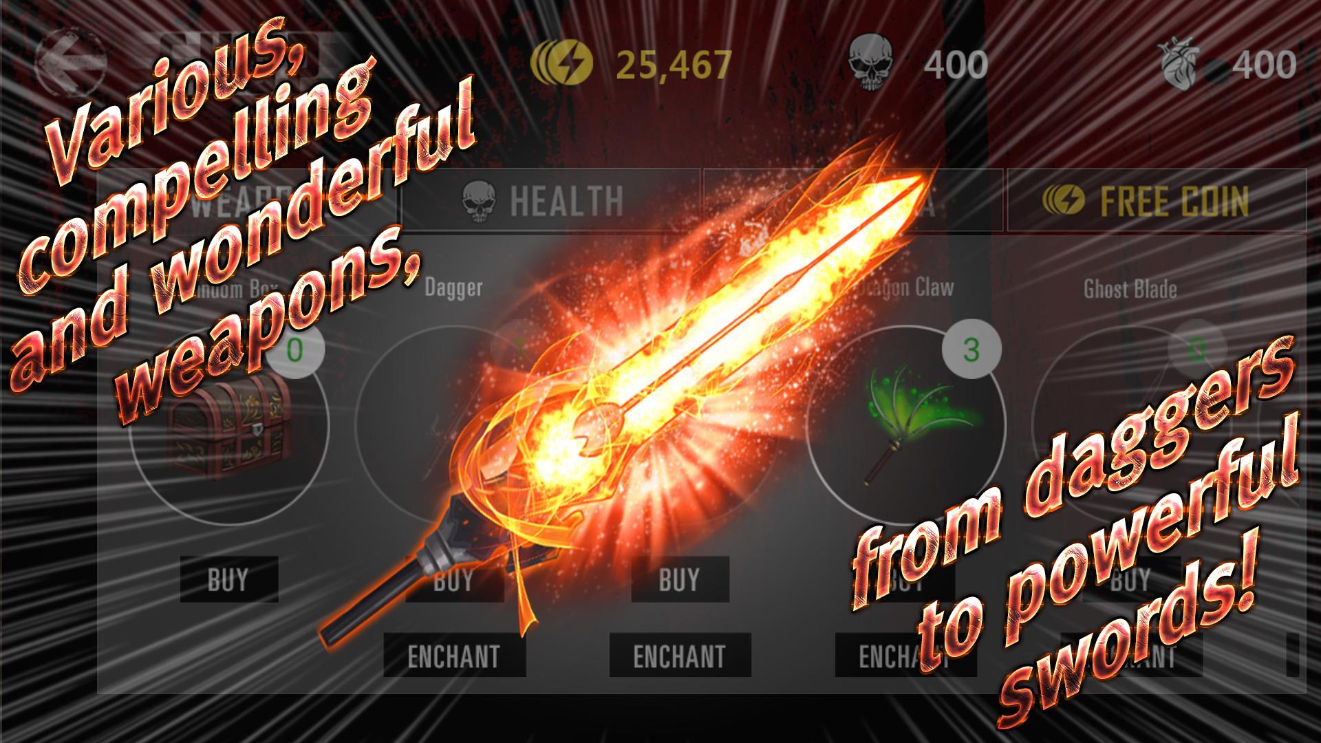 3) 더 많은 좀비를 죽이고 동전을 얻은 무기를 매혹하여 더 강한 닌자가 되십시오.
