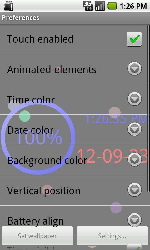 추가 배터리를 저장하기 위해 배경이 표시되지 않으면 (대기, 메뉴 또는 기타 응용 프로그램) 애니메이션이 중지됩니다.