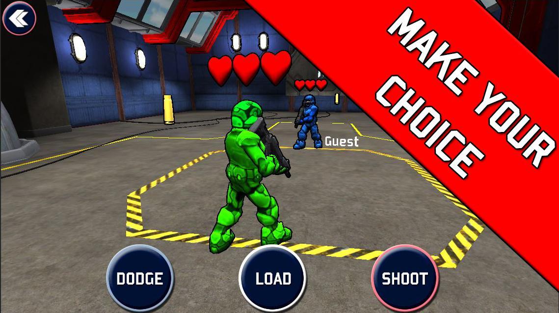 각 플레이어는 각 턴마다 3 가지 옵션을 선택해야합니다 - 촬영 /로드 / 닷지는 각 픽이 상대방과 대응하고 상대방에게 가장자리를 줄 수 있습니다.