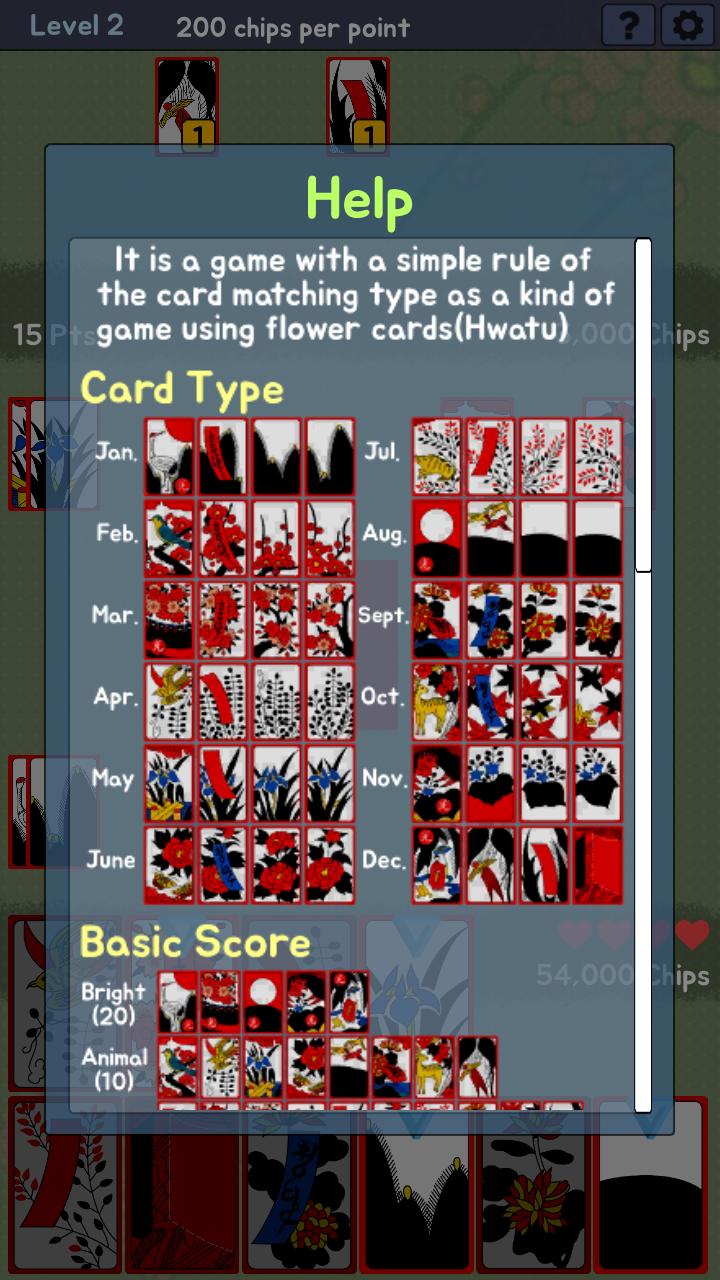 플라워 카드 (hwatu)를 사용하는 일종의 게임으로서 카드 일치 유형의 간단한 규칙을 가진 게임입니다.