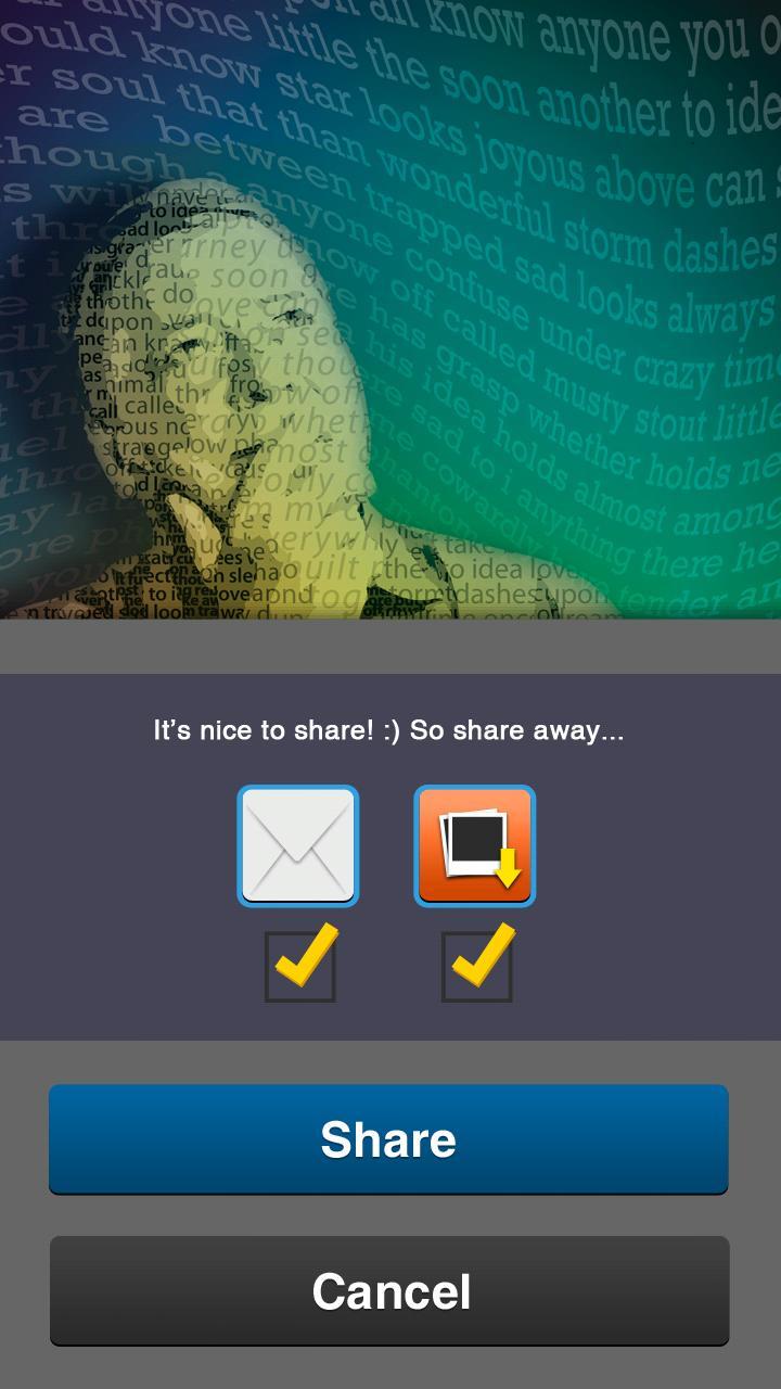 당신은 당신이 만든 shatism을 저장하고 이메일로 친구들에게 보낼 수 있습니다.