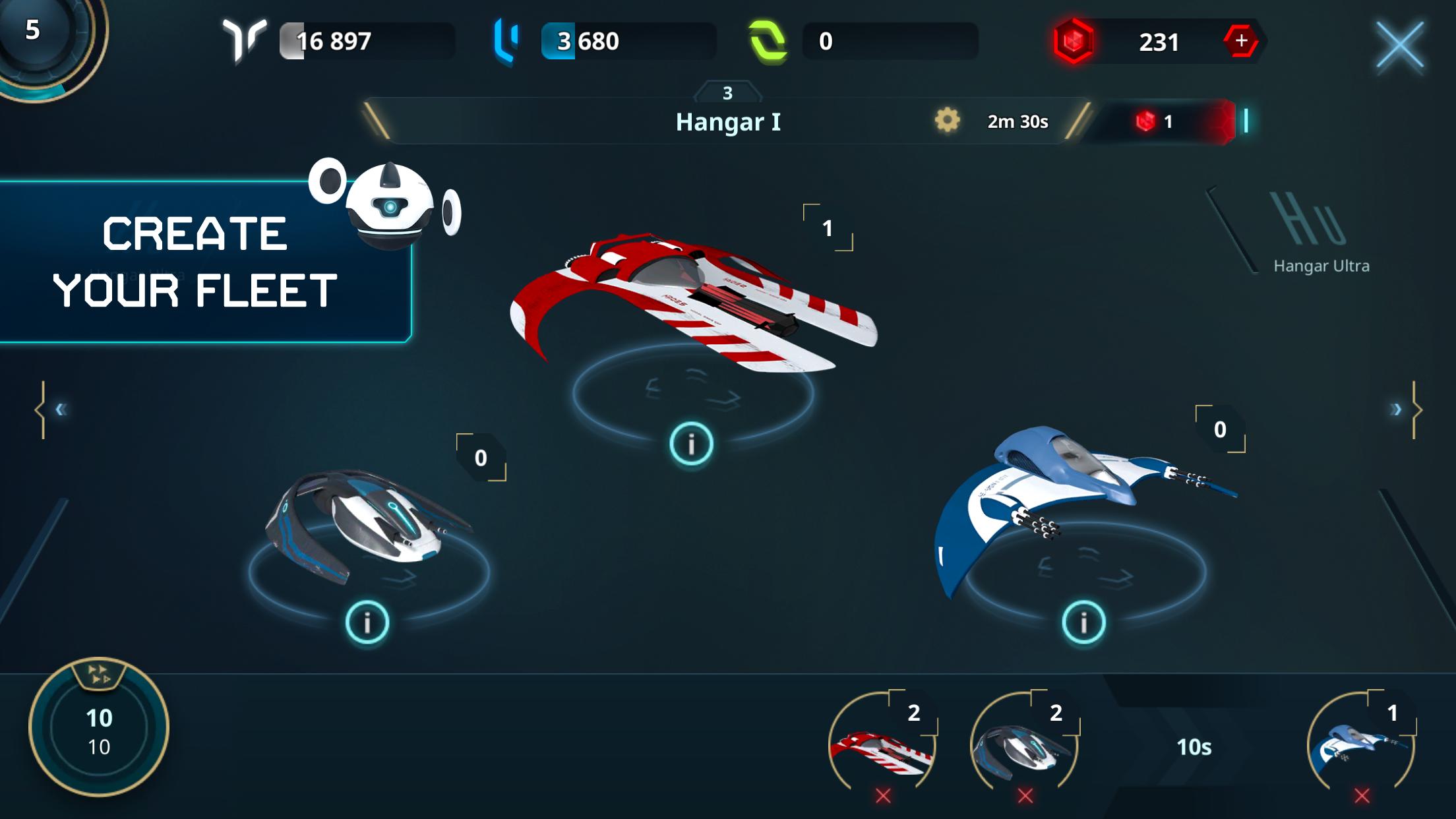 - 자신의 모선, 미래의 군함을 사용자 정의하고 전투에서 사용하여 함대의 사기와 권력을 향상시킵니다.