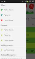 YAMS : 5 개의 주사위 모두 동일 : 첫 번째 YAMS 의 50 개의 보너스 포인트와 다음의 100 보너스 포인트. 첫 번째 YAMS 언제든지 기록 될 수 있으며, 다음 YAMS 이미 얻은 YAMS 의 수를 검색하기 위해 얻은 경우에만 인식됩니다.