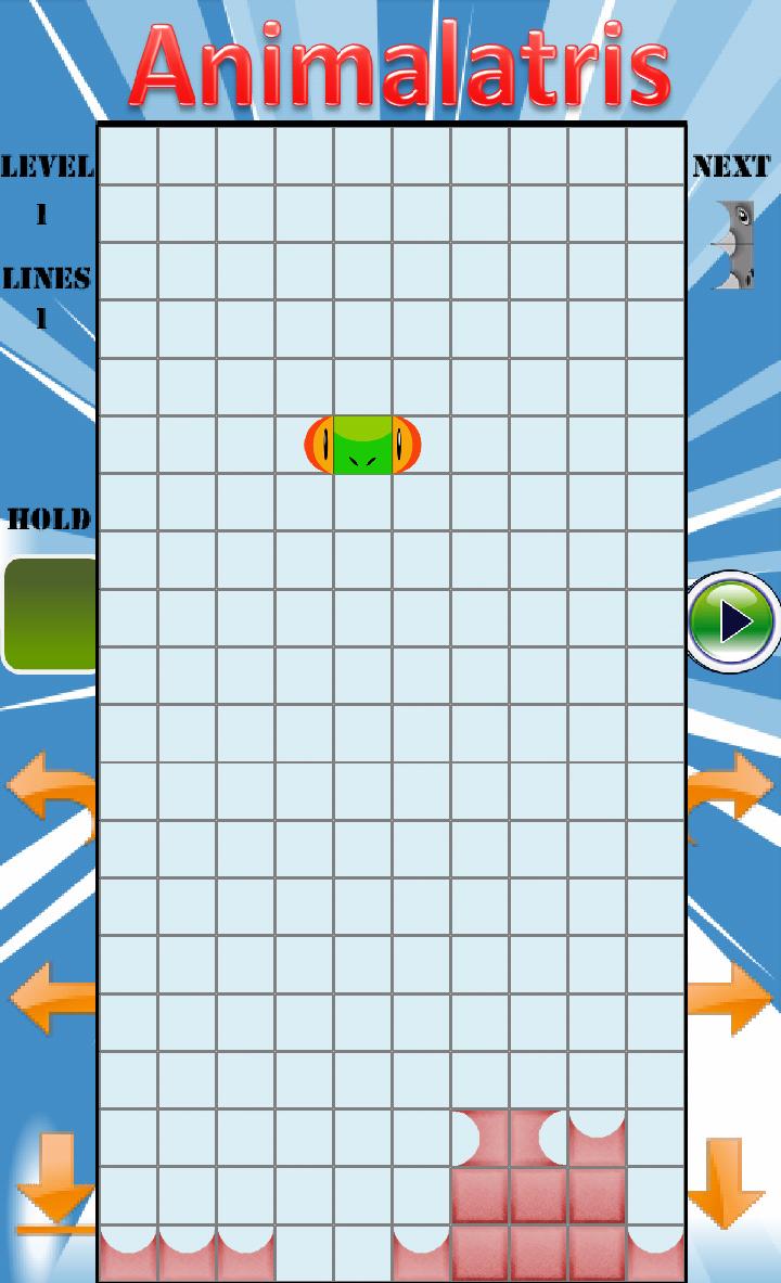 Animalatris 동물을 기반으로 한 블록이 테트리스와 같은 사각형을 위해 만들어지는 것이 아니라 각각 10 정사각형에 대해이 선을 구성하는 동일한 공간을 채우기위한 세 가지 다른 형태로 구성된 테트리스에 대한 새로운 검토입니다. 선을 채우기 위해 조각을 배치해야 할뿐만 아니라 사각형을 형성하는 선을 채우기 위해 결합해야하기 때문에 이러한 변형으로 도전이 증가합니다.