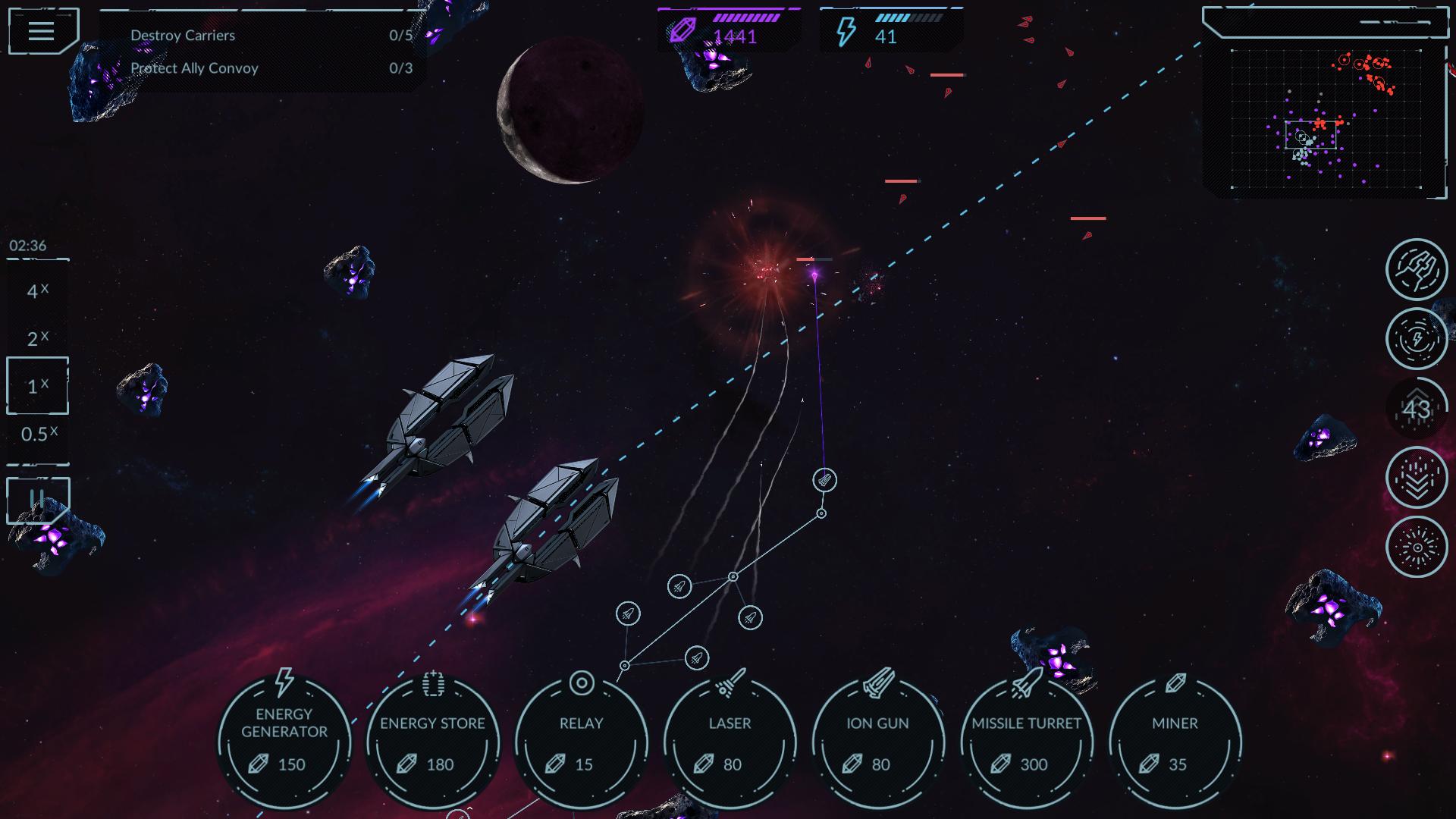 작업에는 에너지 그리드 구성, 자원 조달, 선박 업그레이드 및 적을 파괴하는 것이 포함됩니다.