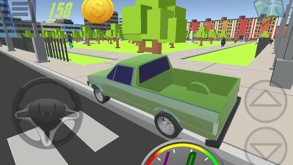 이 게임에서는 사람들에게 마을을 타고, $를 벌고 자동차를 구매해야합니다.
