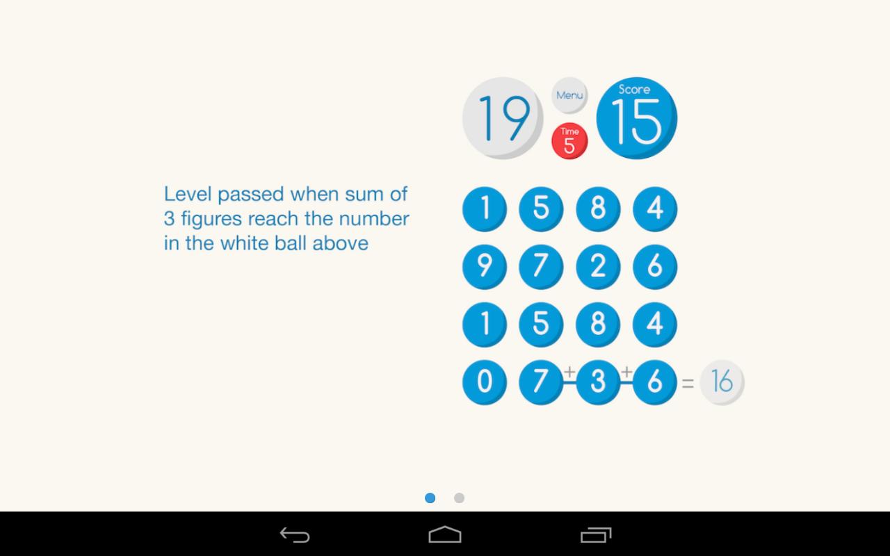 3 인물을 수평으로, 수직 또는 L 모양으로 스 와이프하여 수학으로 연주합니다. 3 개의 수치가 흰색 공의 숫자에 도달하면 레벨이 통과되었습니다.