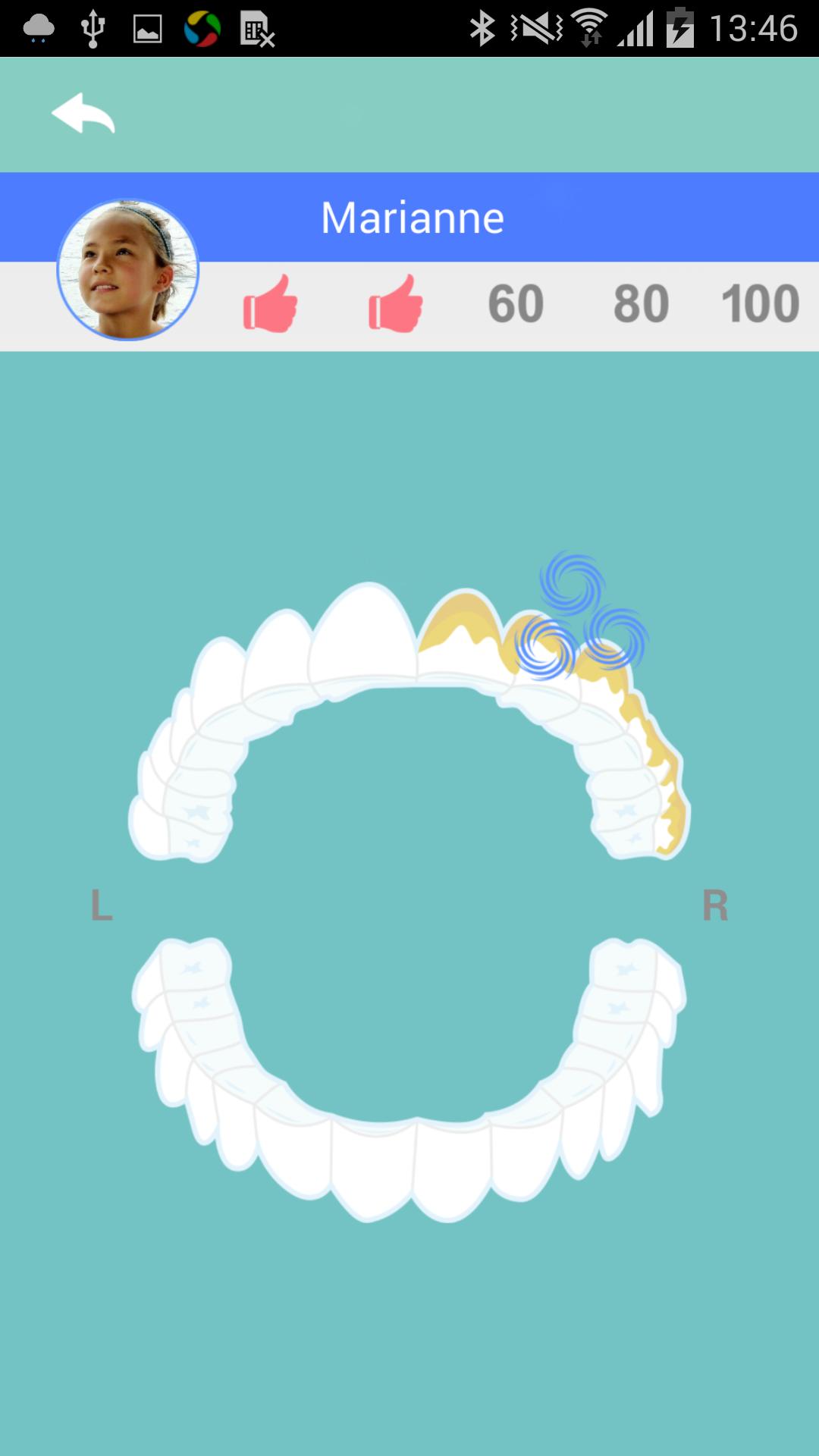 디지털 자이로 스코프와 3D 센서를 통해 Rainbow Junior 이 앱에서 주니어의 실시간 칫솔질을 따릅니다.