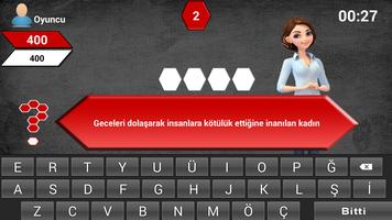 Kelime Oyunu 은 일반적인 문화 테스트 게임입니다. 총 14 개의 질문으로 구성됩니다. 4 ~ 10 글자가있는 각 단어의 2 가지 질문이 있습니다. 각 질문은 답의 문자 수로 포인트를 제공합니다. 답을 기억할 수 없다면 "편지 구매"버튼을 누르면 편지를 얻을 수 있습니다. 그러나 귀하가받는 모든 서신만큼 문제의 가치는 100 포인트 만 감소합니다. 답을 찾으면 "답변"버튼을 누르면 추측을 쓸 수 있습니다. 당신은 30 초에 대답 할 수 있습니다. 모든 질문에 답변하는 데 총 4 분이 걸립니다.