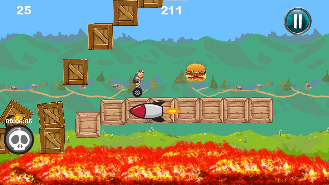 Fat Boy World 의 아름다운 세계를 통해 Segway를 뛰어 넘고 운전하도록 도와주세요.