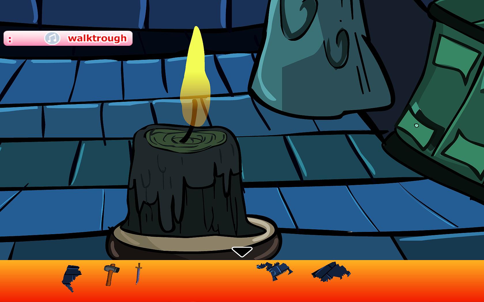 오른쪽에 망치를 가져 와서 바닥의 돌에 사용하고 열쇠를 얻으십시오. 왼쪽 나무 바닥에있는 작은 도어의 키를 사용하고 그림 조각을 얻으십시오.
