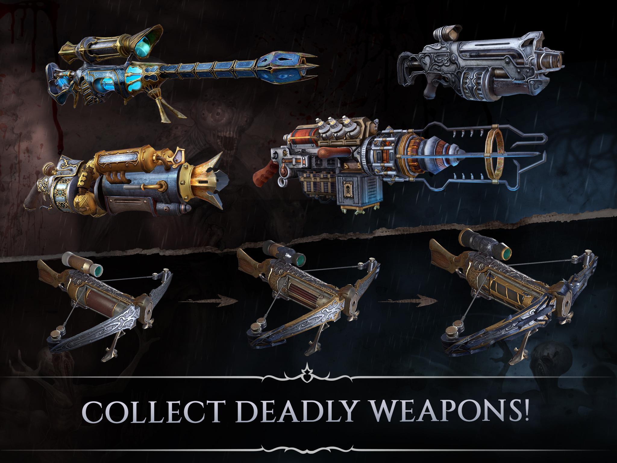 당신의 처분에는 석궁, 활, 산탄 총, 마술 직원 및 독특한 실험 무기 샘플이 있습니다!