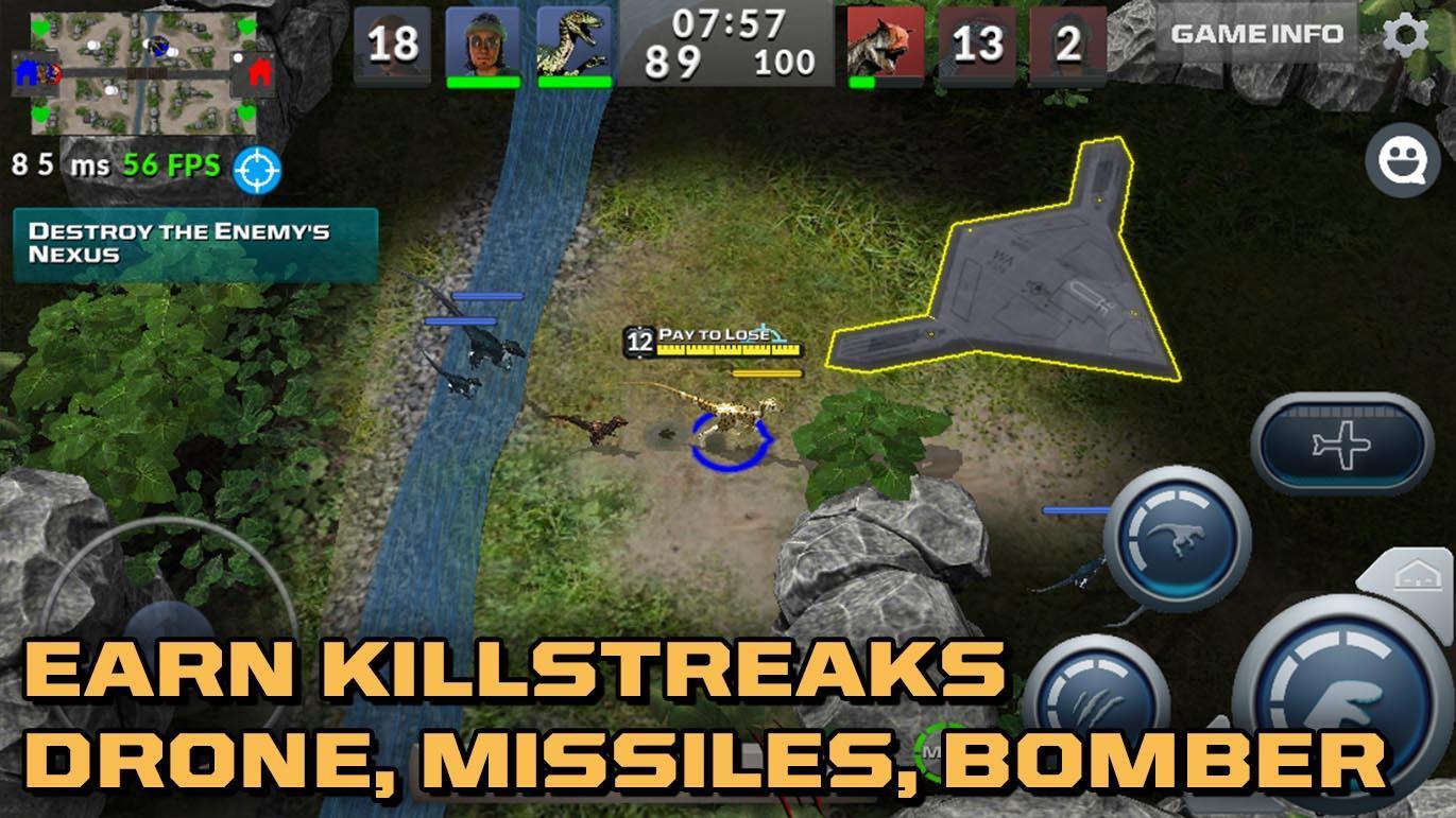 선사 시대의 강렬한 3v3 팀 전투! 친구들과 싸우고 Primal Carnage Assault 에서 새로운 적을 만드십시오. 팀을 섞어 6 개의 독특한 군인 수업을 모두 시험해보십시오. 장갑 공룡과 민첩한 인간은 근접 및 원거리 무기 공격과 함께 적의 기지를 꺼내고 있습니다. 쥬라기와 백악기에서 가장 좋아하는 공룡.