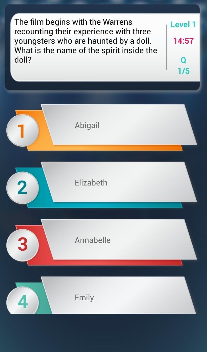 이것은 The Conjuring 2 Quiz 와 관련된 질문에 답하는 재미있는 퀴즈 게임입니다.