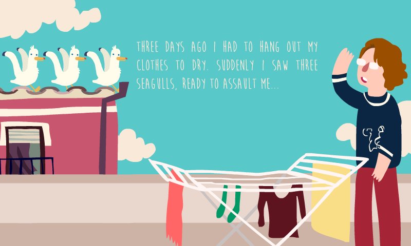 갈매기는 테라스에 옷을 걸어둘 우리의 자유를 빼앗아 갈 것이지만, 여러분의 도움으로 우리는 반항할 수 있을 것입니다. 반란군은 나날이 성장하고 있으며 해방이 가까워지고 있지만 승리하려면 모두의 도움이 필요합니다.