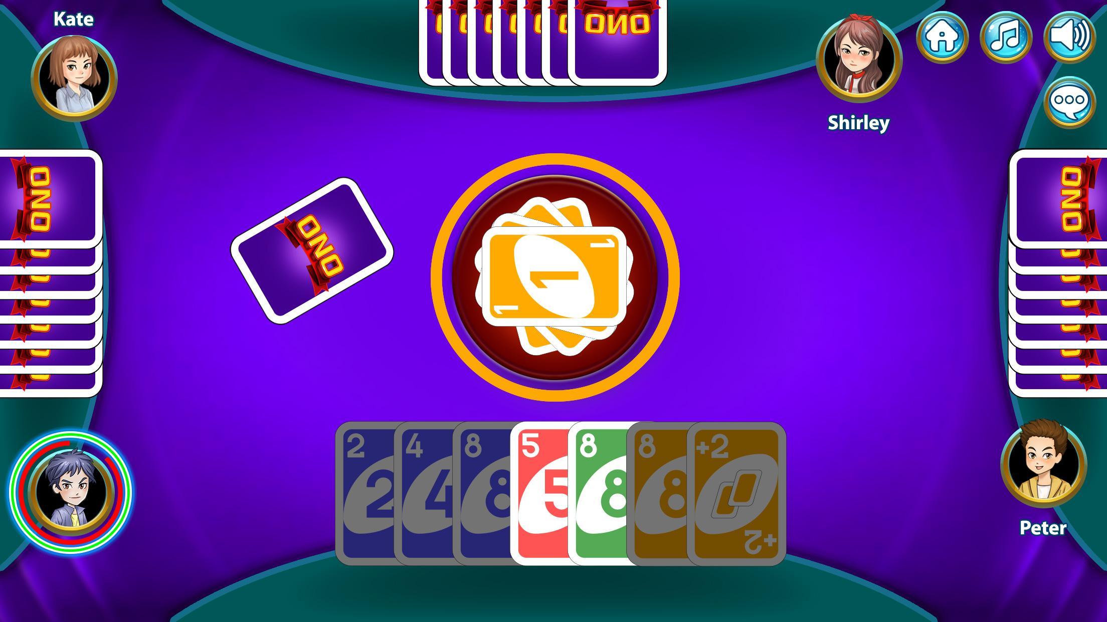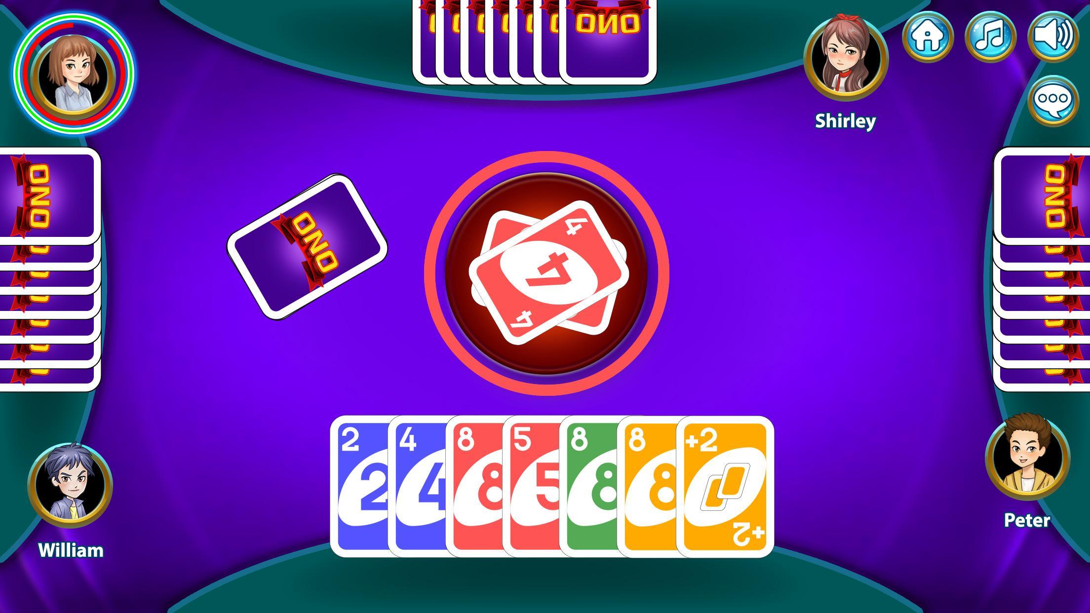 이 멋진 4 명의 선수 Ono 게임에서 모든 카드를 모두 제거한 최초의 플레이어가 되십시오! 오노 네 가지 색상의 색상과 이름으로 카드를 매치! 데크에 카드가 1 개 밖에 남지 않으면 1 버튼을 누르지 않으면 페널티 카드 2 개를 선택합니다.