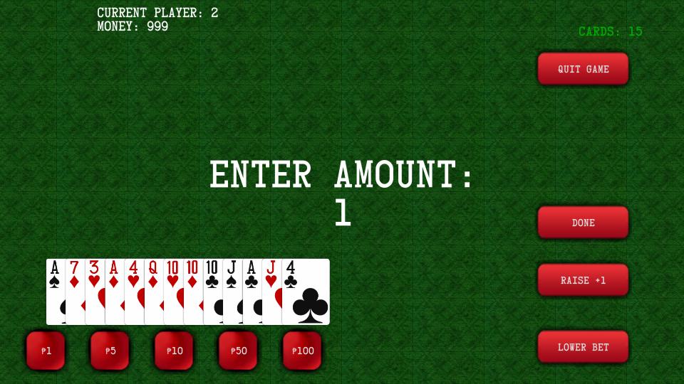Tongits 또는 Pinoy Rummy는 3 명의 플레이어가 다음과 같이 승리 해야하는 로컬 카드 게임입니다. 각 플레이어가 손에 든 모든 카드를 통해 누가 가장 낮은 가치를 얻었는지 (페이스 카드를 제외한 모든 수치는 항상 10 개를 얻었습니다), 플레이어가 왼쪽에 카드가 없어 질 때까지 모든 카드를 멜로드하십시오. 친구들과 함께 연주하고 멜딩에 대한 기술을 테스트하고 마지막 사람이 누구인지 확인하십시오. 많은 사람들이 사랑하는 고전적인 게임입니다.
