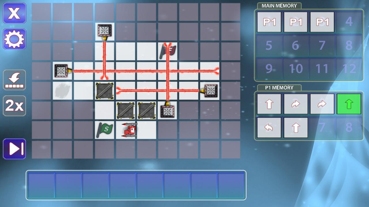 플레이어의 임무는 로봇이 출구에 도달하도록 명령을 계획하는 것입니다. 레벨은 더 어렵고 어렵고 최소 명령 수를 사용해야합니다.