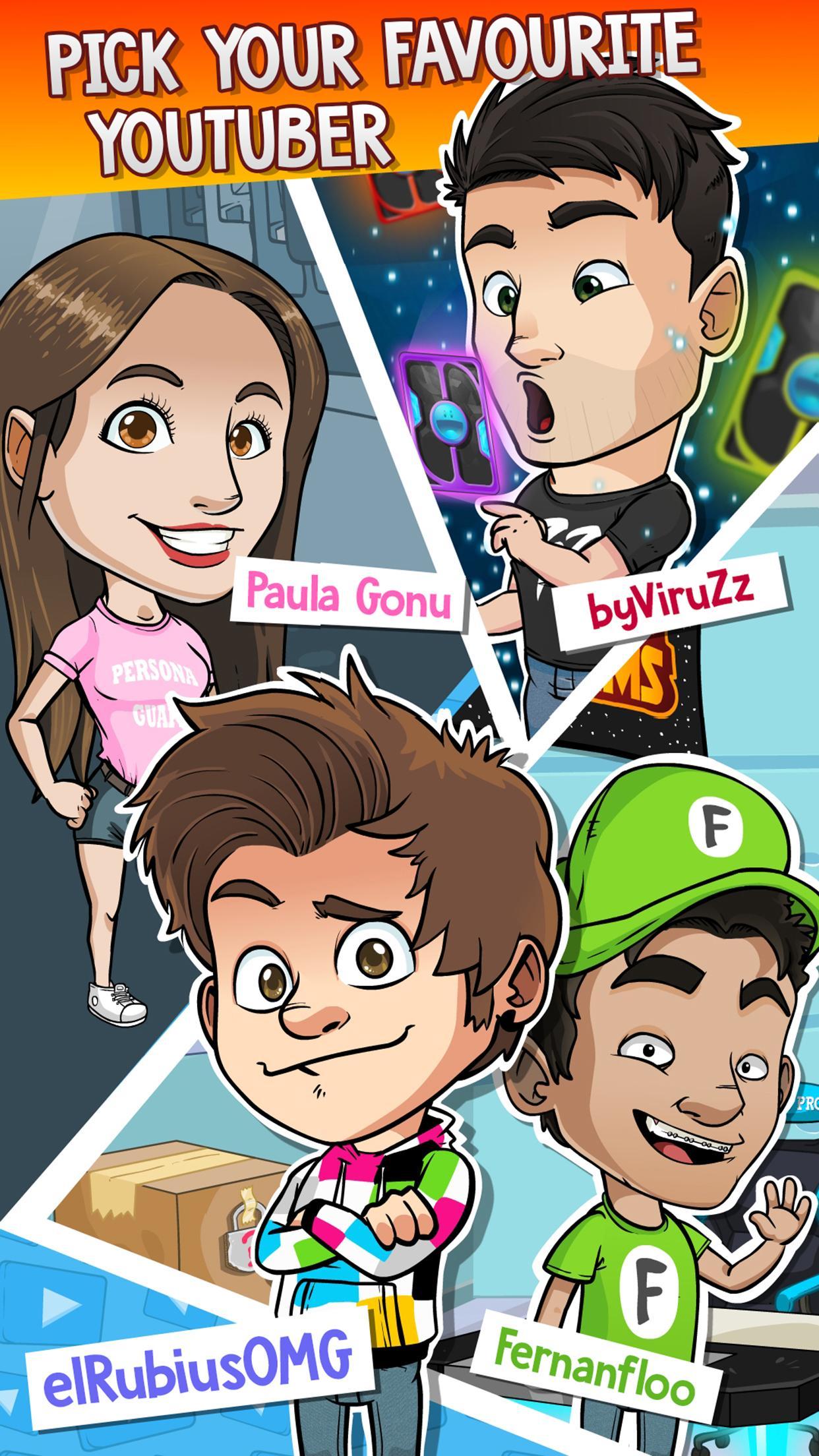 Elrubiusomg, Fernanfloo, Byviruzz 및 Paula Gonu 중에서 가장 좋아하는 튜비를 선택하십시오. Gatete, Goblin, Nuck Chorris 및 Dummy Boy와 같은 4 개의 가상의 상징적 인 캐릭터를 선택할 수도 있습니다.