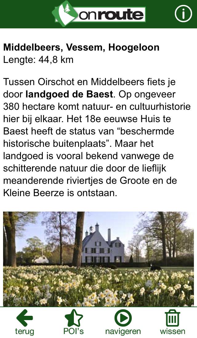 O aplicativo OnRoute é um aplicativo para rotas divertidas e emocionantes de ciclismo, caminhada e vela. Nas rotas do aplicativo, há muitas informações úteis sobre os locais interessantes (Pois) onde você se aproxima, e você será automaticamente alertado quando estiver andando ou andar de bicicleta. A propósito: você também recebe sugestões para instalações de catering, lugares para piquenique, museus e assim por diante.