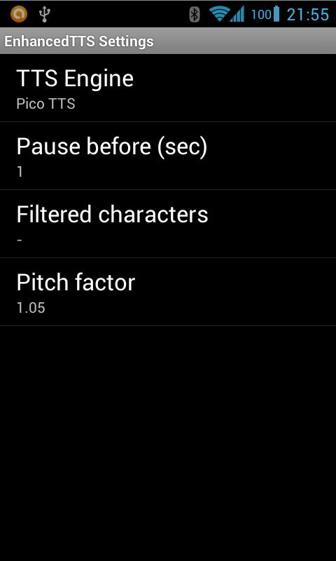Configurações extras para o seu TTS: Atraso, Pitch, exclua caracteres.