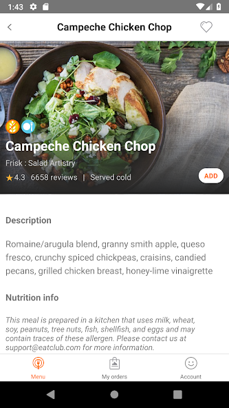 - Browse EAT Club Seleções diárias, descrições de pratos, classificações e revisões