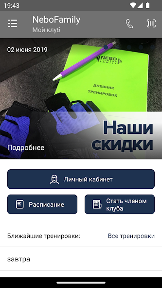 Usando o aplicativo, você pode seguir as notícias, a programação do clube e receber rapidamente informações sobre as alterações no cronograma e nas ofertas especiais.