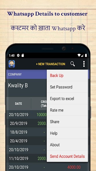 Vasooli Manager ajuda você a controlar seu crédito (Jama) e débito (Udhar).