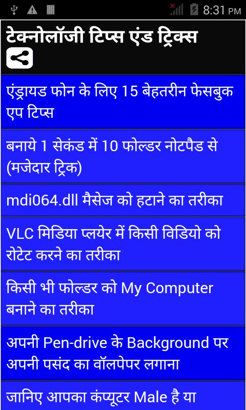 Todas as dicas são fornecidas em linguagem hindi fácil e simples.