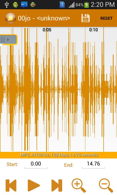 Salve o áudio cortado como um novo arquivo de áudio e marque -o como música, toque, alarme ou notificação.