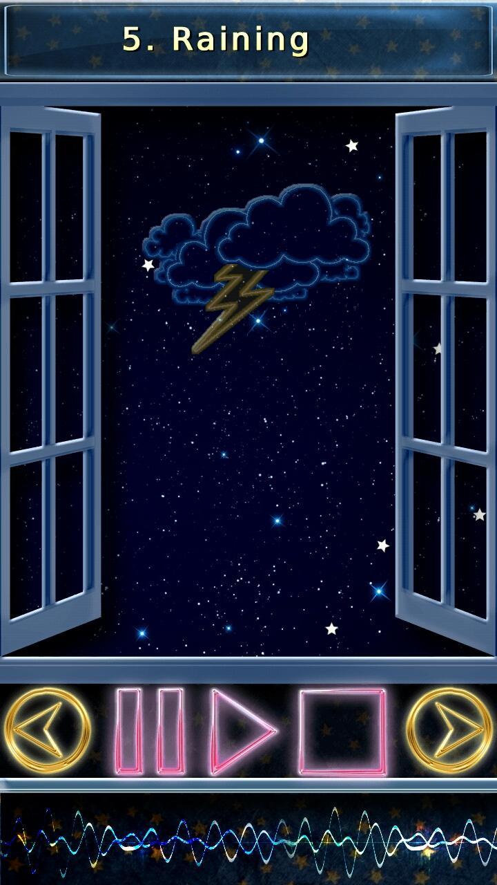 Escolha um dos sons zen calmantes que incluem um secador de cabelo, chuva no telhado do carro, aspirador de pó, ondas oceânicas, TV sem sinal, gotas de água do chuveiro, lago de sapo à noite, chuva leve, trem, vento, subaquática, ondas oceânicas e liquidificador e mais 10 ruídos na versão completa.