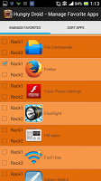 A tela de bloqueio faminta permite bloquear seu dispositivo de uma maneira completamente nova. A tela de bloqueio possui "racks" - como aqueles nas prateleiras onde você pode colocar seus aplicativos favoritos para acesso rápido. Os aplicativos podem ser pressionados há muito tempo e arrastados para o ícone "Droid" (o dróide faminto ;-)) para desbloquear a tela e iniciar os aplicativos. Os aplicativos podem ser configurados e classificados na tela "Gerenciar aplicativos favoritos". A tela "Gerenciar aplicativos favoritos" pode ser iniciada a partir da gaveta "Gerenciar aplicativos/configurações".