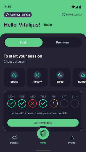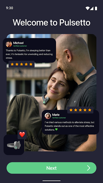 Reduza o estresse, a ansiedade melhora o sono com o dispositivo Pulsetto e programas exclusivos.