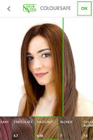 Uma foto, ajuste a imagem, altere a cor do cabelo e clique em OK. Neste ponto, sua foto será exibida na tela e abaixo dela a cor do cabelo escolhida e o gráfico de cores ColourSafe completo será exibido. Escolha entre as diferentes possibilidades! Depois de escolher a cor desejada, clique em OK se você escolher uma cor que não for compatível com a tonalidade original, o aplicativo fornecerá detalhes do motivo da incompatibilidade.