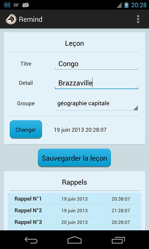 No entanto, o uso desse método é forçado ao longo do tempo, porque requer uma disciplina muito importante para gerenciar minha programação. Então, procurei uma ferramenta para gerenciar e agendar a parte de recall deste método. Impossível encontrar, muito menos na plataforma Android, e é por isso que o desenvolvedor da minha equipe, deicidamos para criar essa ferramenta útil.