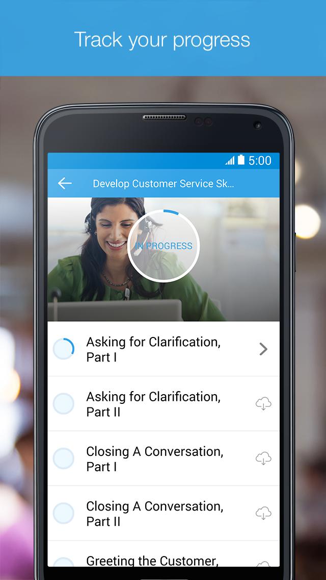 Nosso aplicativo móvel permite acessar sua experiência de aprendizado sempre e onde quiser. A sincronização automática significa que você pode ir do computador para o dispositivo móvel e voltar - e nunca mais perder seu lugar em uma lição.
