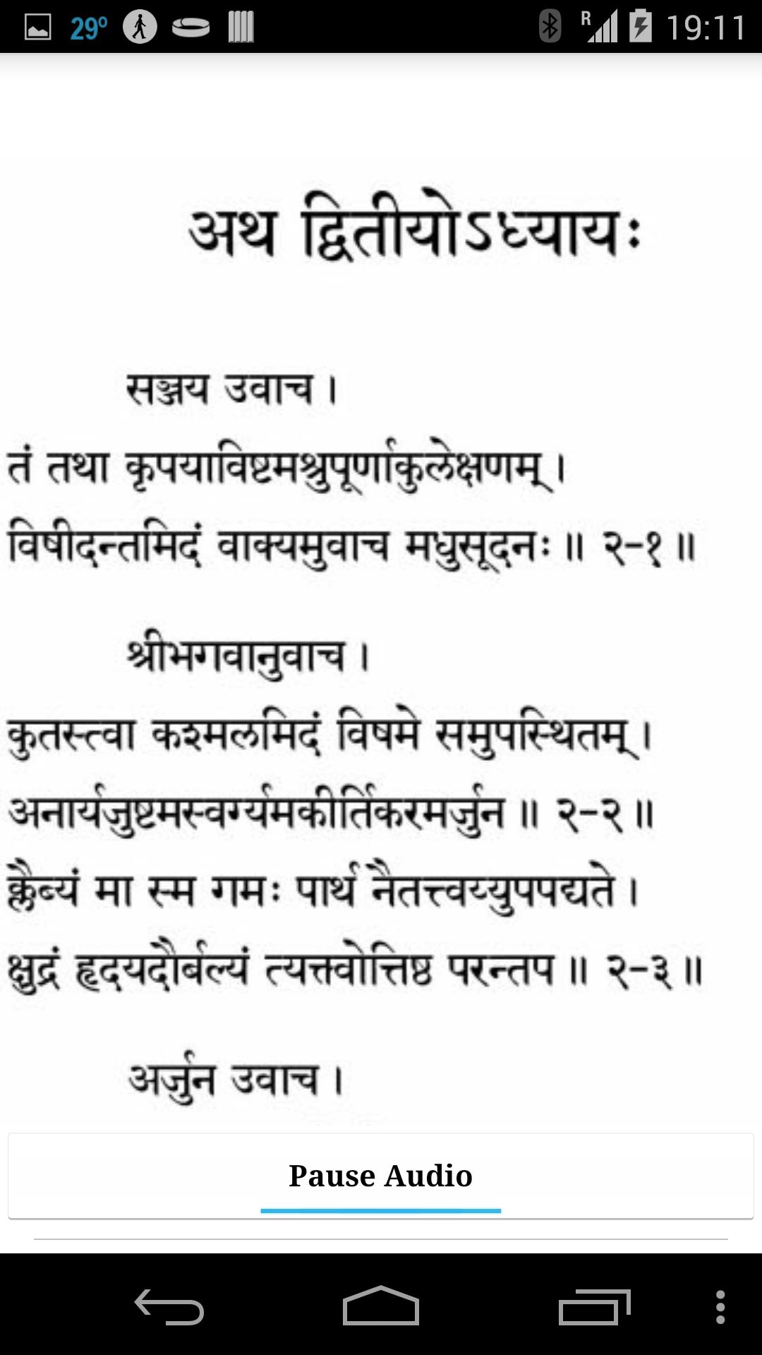 O texto está em devnagiri / hindi com áudio em sânscrito