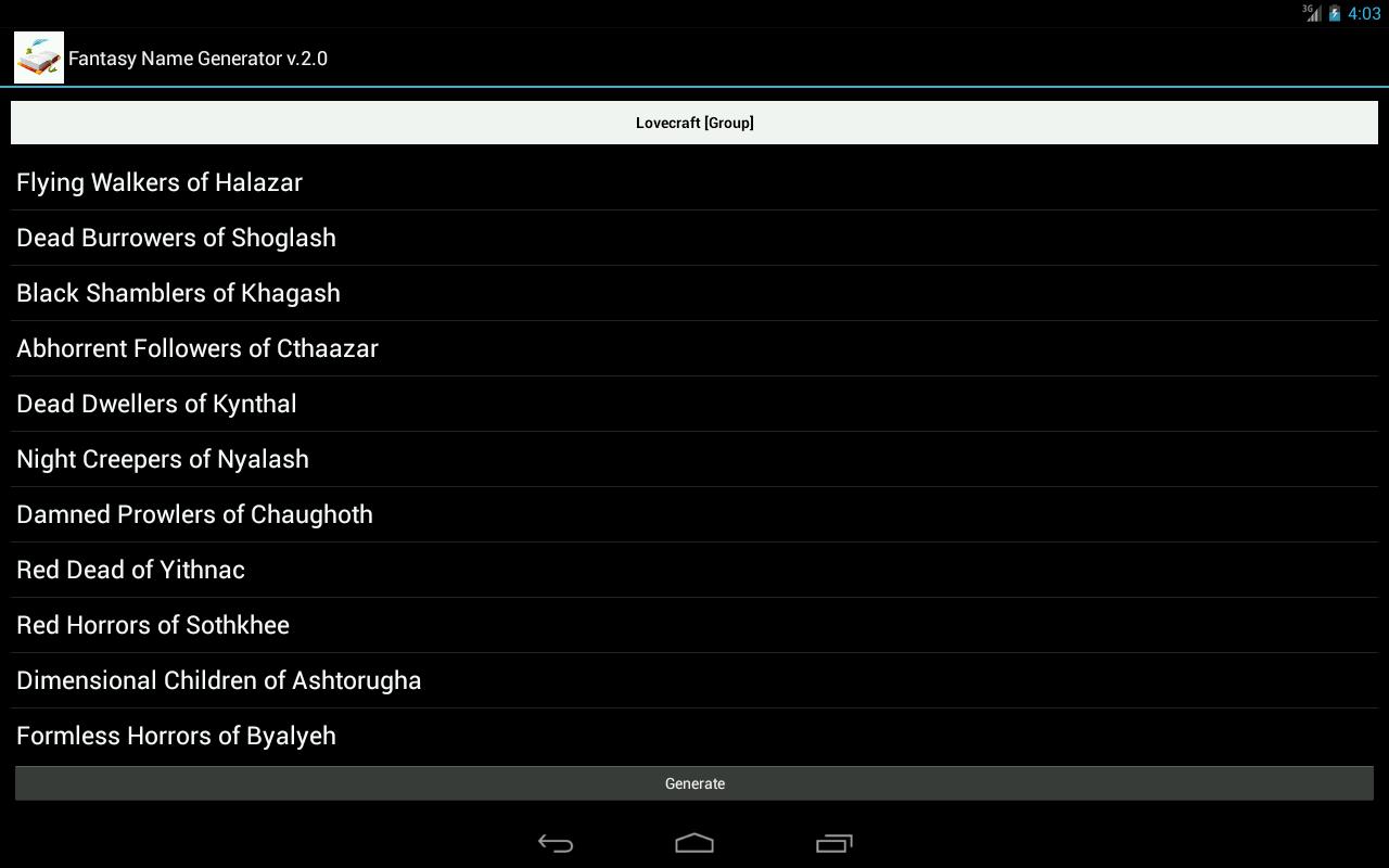 Você deseja um nome de fantasia para o seu jogo on -line, livro, RPG etc. Com este programa, você pode criar facilmente alguns :) ele foi projetado para ser simples e leve. Espero que isso ajude você.
