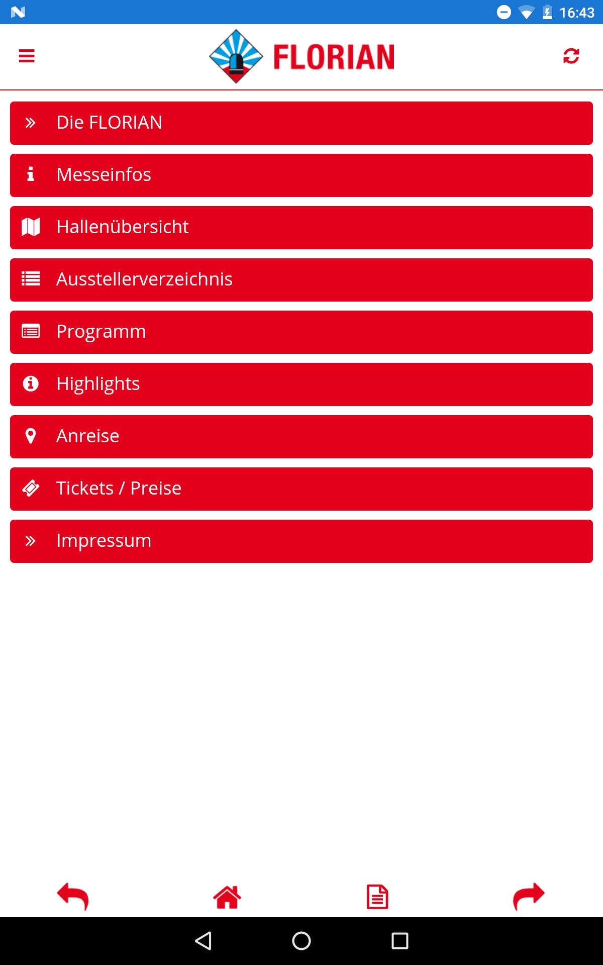As tecnologias do futuro para os membros da brigada de bombeiros, serviços de emergência e proteção populacional serão apresentados na FLORIAN . Os últimos desenvolvimentos na área de segurança e proteção contra desastres são apresentados e os principais pontos da cooperação entre as organizações são discutidos. Ao mesmo tempo, a feira oferece um extenso programa de palestras gratuitas para obter informações e treinamento adicional para todos os membros da Brigada de Bombeiros, THW e serviços de emergência, bem como para os fabricantes de decisão municipal.
