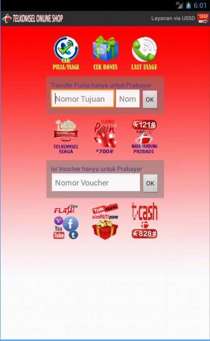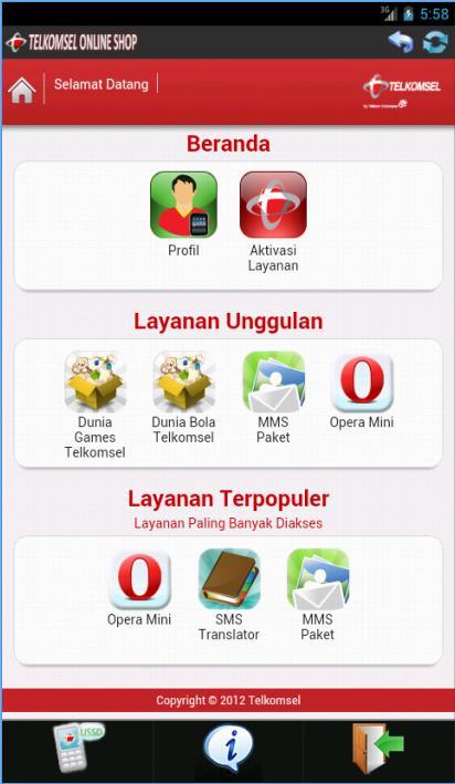 O aplicativo cliente da Telkomsel Mobi adicionando vários serviços de acesso ao serviço via USSD a um ícone fácil de lembrar.
