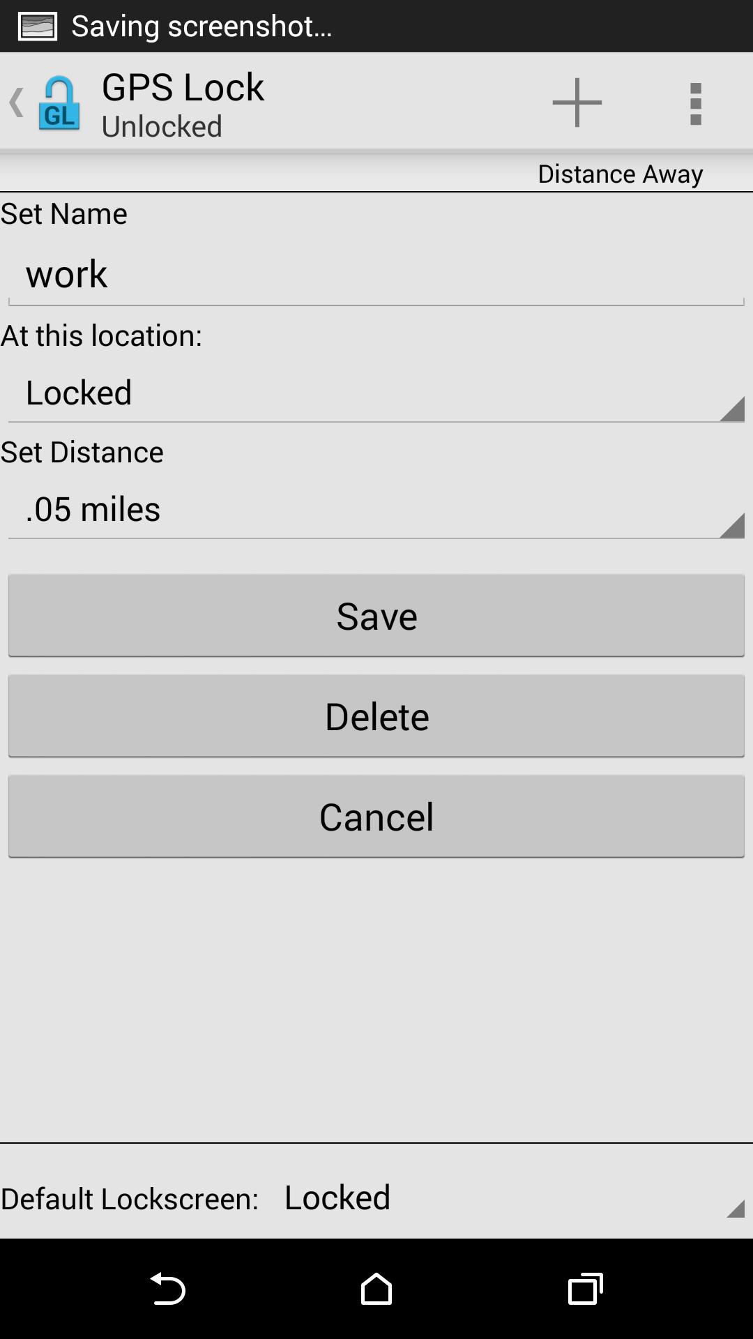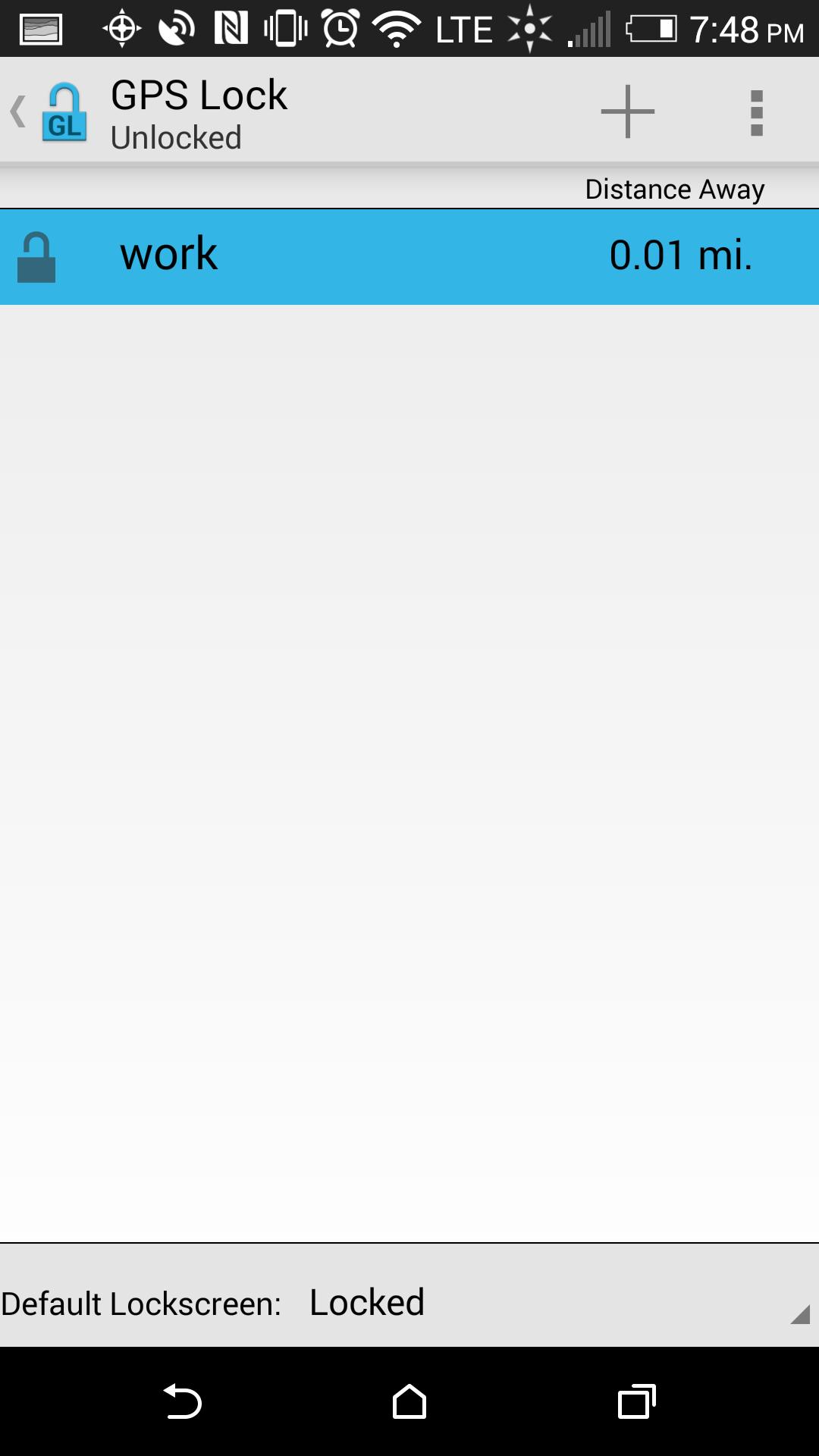GPS Lock permite que você escolha onde deseja que sua tela de bloqueio seja ligada e onde você deseja que seja desligado.