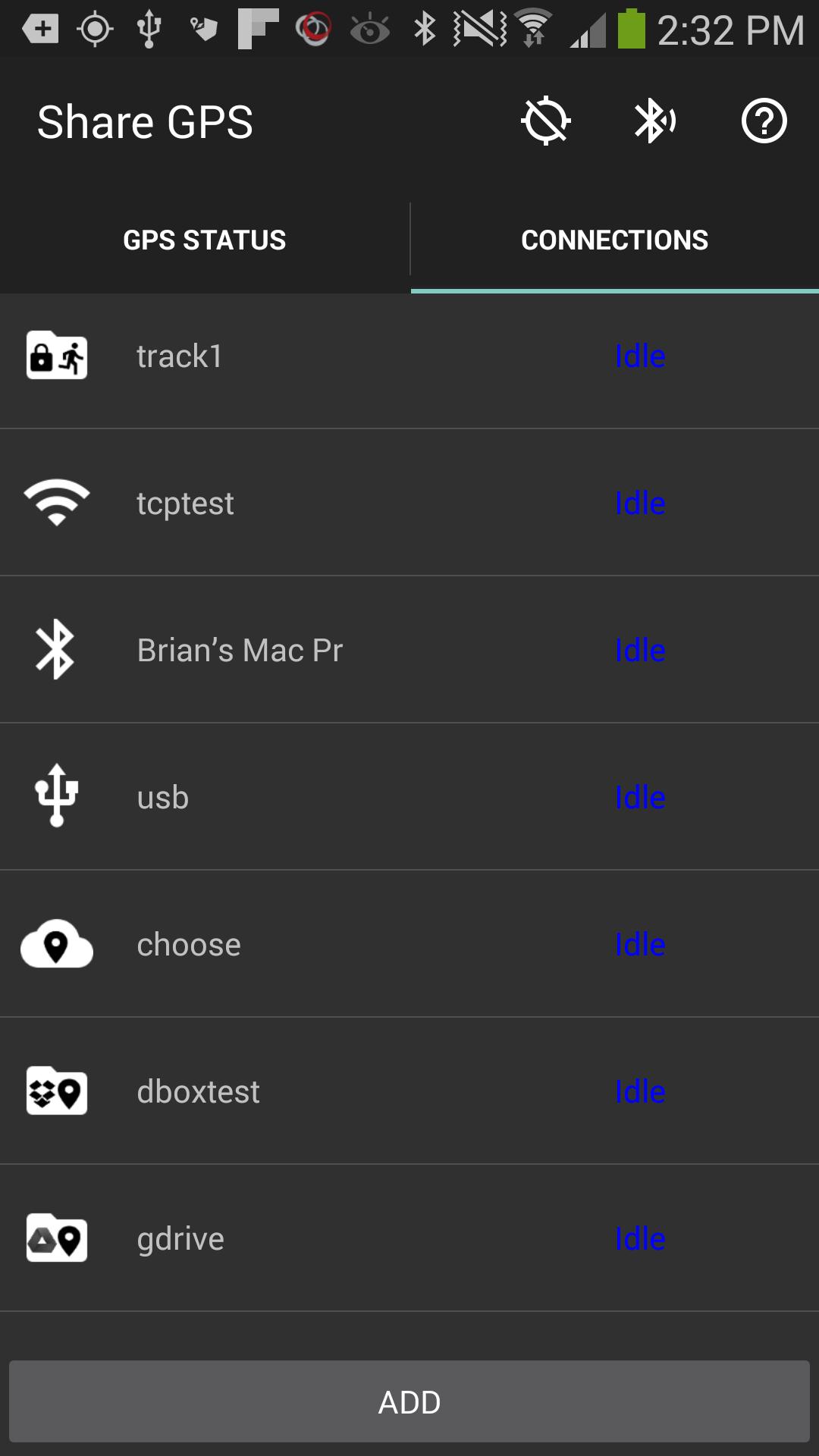 Compartilhe as frases do NMEA GPS ou atue como um servidor compatível com GPSD através dos seguintes métodos: