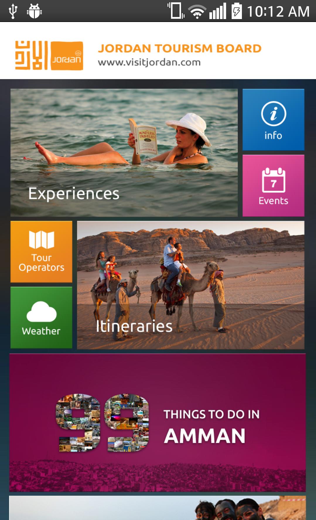 O aplicativo oficial Visit Jordan do Jordan Tourism Board.