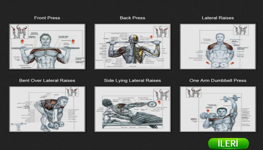 Você pode executar o grupo muscular do ombro com este aplicativo para pedir movimento na academia.